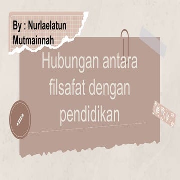 Download Free PDF. View PDF. HUBUNGAN ANTARA FILSAFAT DENGAN PENDIDIKAN Intan Fadilah1 1Fakultas Tarbiah dan Keguruan UIN Sultan Maulana Hasanuddin Banten 1Intanfadilah851@gmail.com ABSTRACT The purpose of this study is to determine the relationship between philosophy and education. .